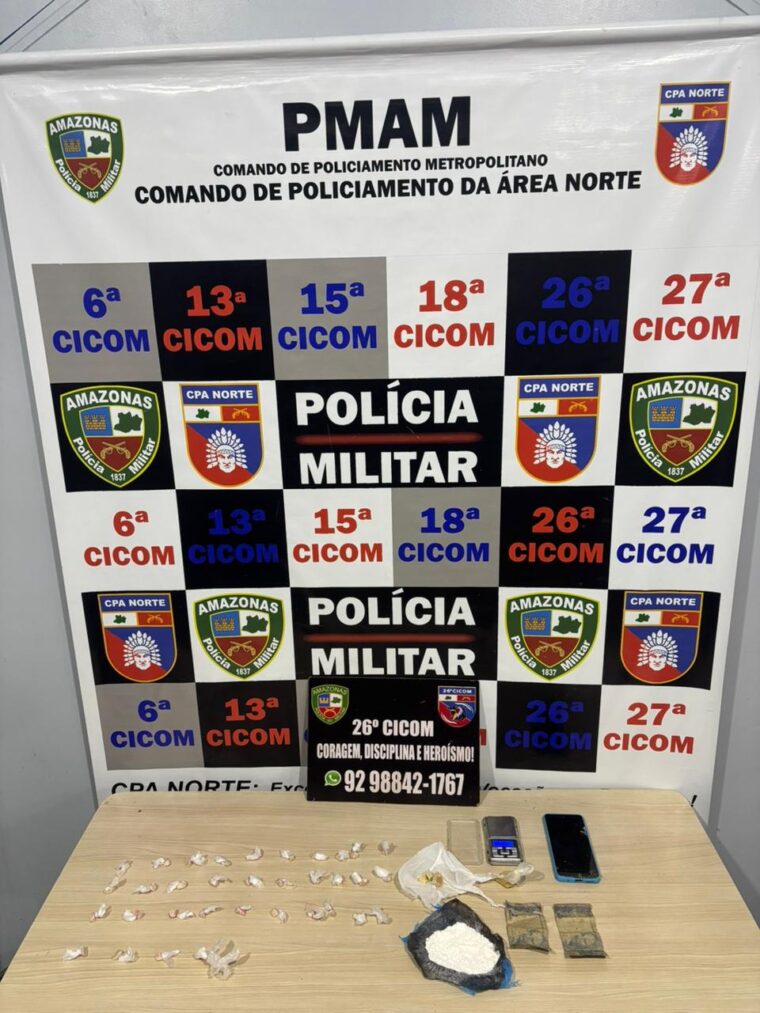 A Polícia Militar do Amazonas (PMAM), por meio da 26ª Companhia Interativa Comunitária (Cicom), na madrugada desta terça-feira (07/04), prendeu um homem, de 30 anos, após reagir à abordagem policial durante ocorrência de tráfico de drogas, no bairro Santa Etelvina, zona norte de Manaus. Ao todo, foram apreendidas com ele 37 porções de entorpecentes, entre oxi e cocaína.