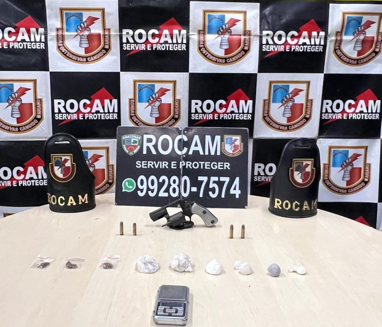 A Polícia Militar do Amazonas (PMAM), por meio das Rondas Ostensivas Cândido Mariano (Rocam), prendeu um homem, de 20 anos, na noite de quinta-feira (27/02) no bairro Alvorada, zona oeste de Manaus. Com ele, os policiais militares encontraram uma arma de fogo, munições e entorpecentes.