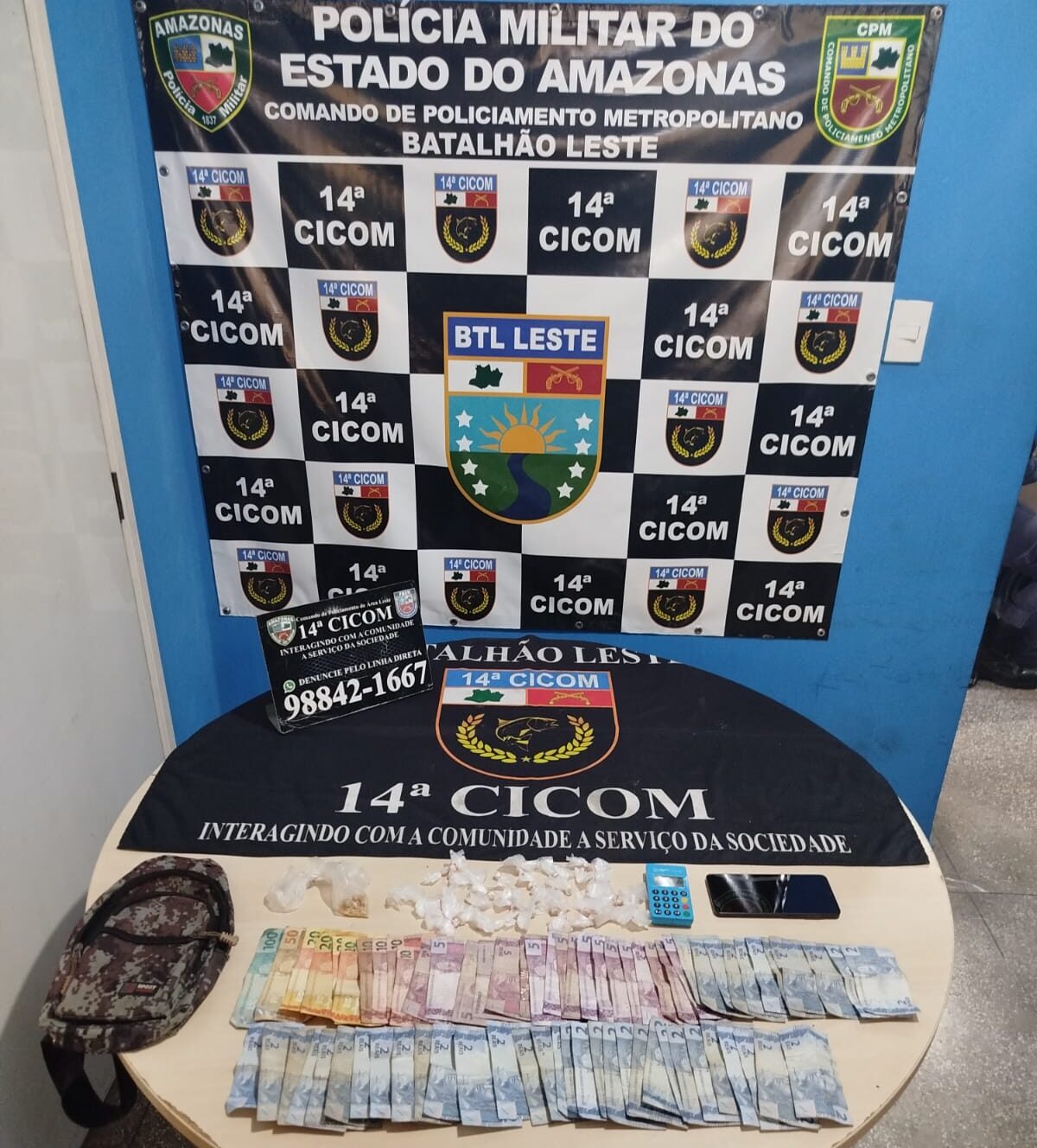 A Polícia Militar do Amazonas (PMAM), por meio da 14ª Companhia Interativa Comunitária (Cicom), prendeu um homem, de 24 anos, e apreendeu 44 trouxinhas de drogas, na quinta-feira (12/02), no bairro Jorge Teixeira, zona leste de Manaus.