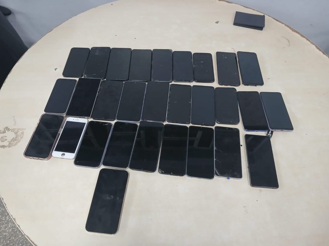 Na ocasião, o suspeito informou aos PMs que era proprietário de uma assistência técnica, onde foram encontrados mais dez aparelhos celulares e três notebooks sem comprovação de procedência.