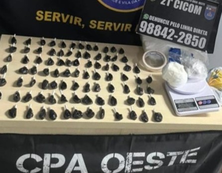 A Polícia Militar do Amazonas (PMAM), por meio da 21ª Companhia Interativa Comunitária (Cicom), prendeu uma mulher, de 25 anos, com 90 trouxinhas e duas porções de drogas. A prisão foi efetuada quando os policiais militares realizavam patrulhamento, na tarde de quinta-feira (27/03), no bairro São Jorge, zona oeste de Manaus.