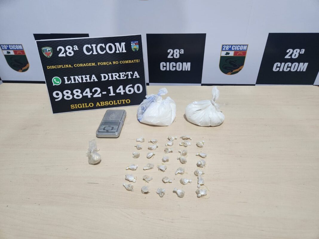 Na manhã de quinta-feira, por volta das 11h40, a equipe policial da 15ª Companhia Interativa Comunitária (Cicom) recebeu denúncia de um popular informando que na rua Gilberto Mestrinho, bairro Colônia Terra Nova, funcionava um centro de distribuição de drogas. Em diligências no local, os policiais militares abordaram dois suspeitos, de 24 e 26 anos.