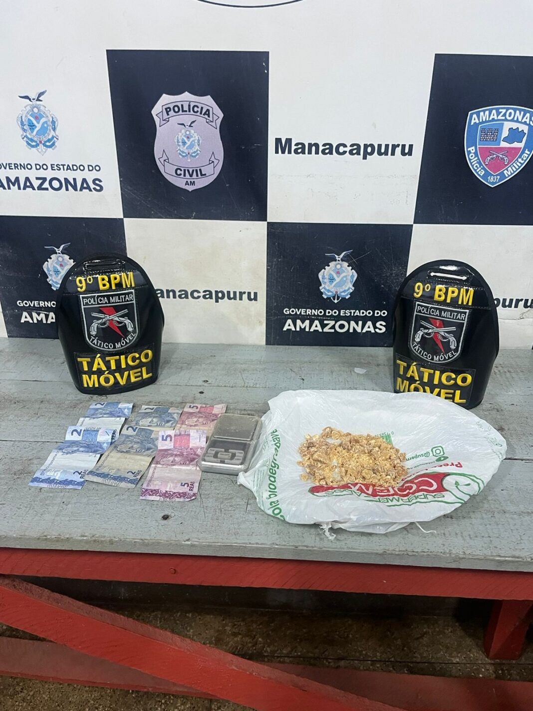 Ainda na quarta-feira, mais um homem, 24, foi preso, desta vez no Centro de Manacapuru. Segundo denúncias, o suspeito estava vendendo drogas no local. Com ele, foram apreendidas duas porções de oxi, uma de cocaína, uma de skunk, além de uma balança de precisão.