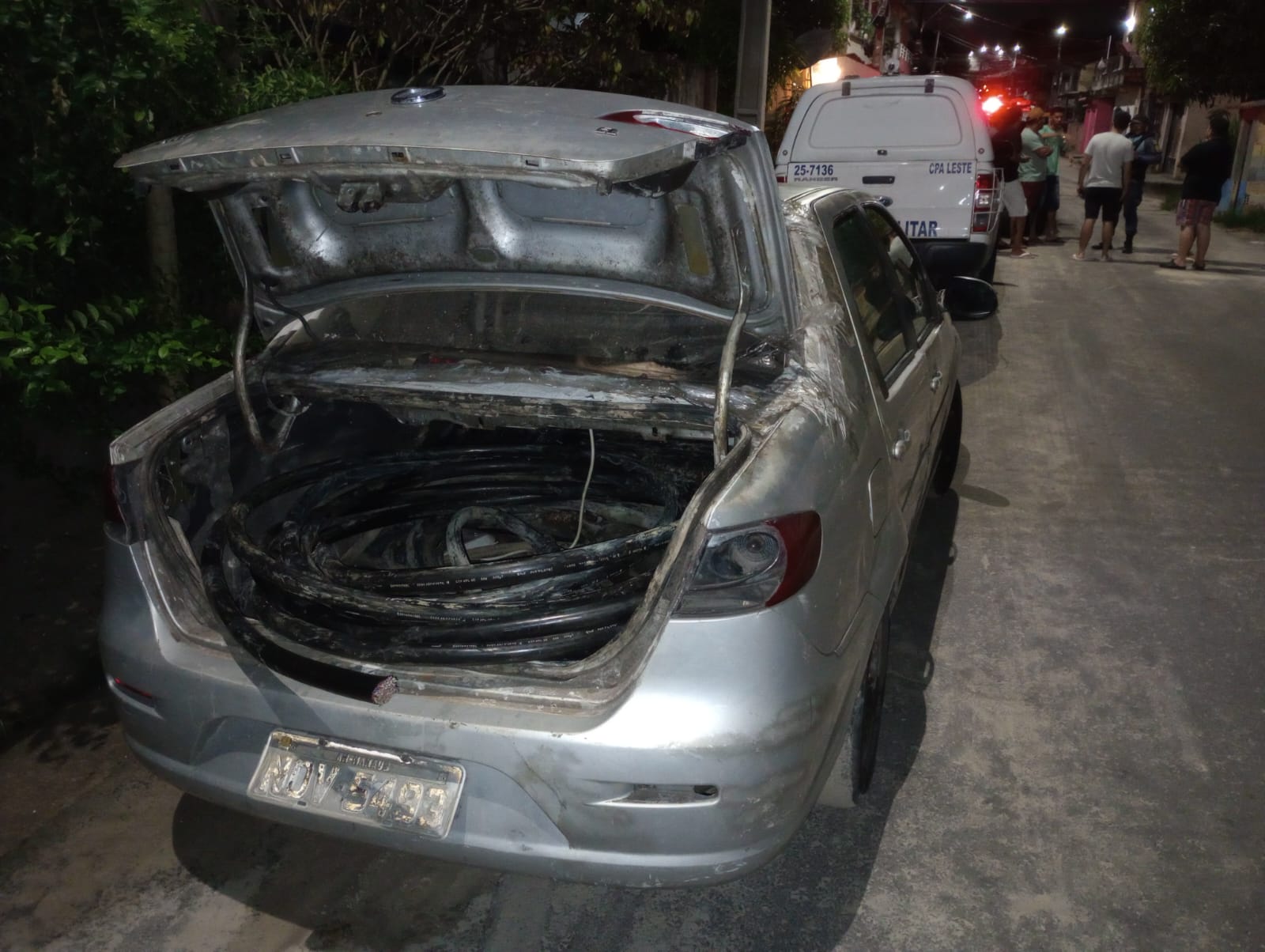 Outra ocorrência foi registrada na madrugada desta quinta-feira (16/05), na rua Canamari, bairro São José 2, zona leste da capital. Os policiais militares da 9ª Cicom foram acionados após informações de que, naquela região, havia um carro abandonado, modelo Siena, cor prata e placas NOV-5493, contendo fios de cobre dentro dele, sob a suspeita de pertencerem a rede de telefonia móvel.