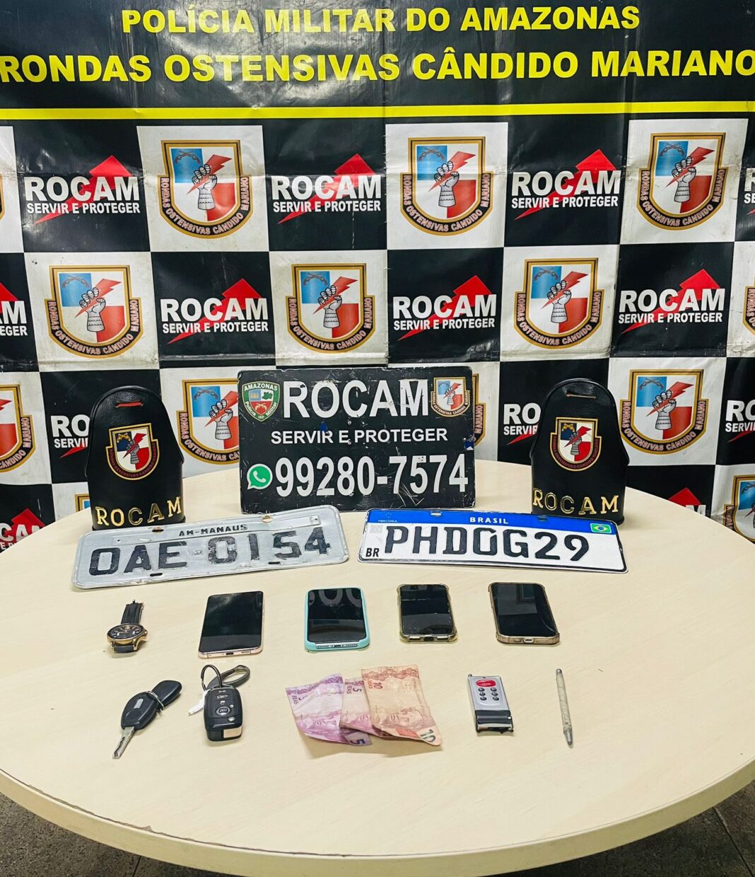 Além dos veículos foram apreendidos quatro aparelhos celulares, sendo três Iphone e um Samsung; um relógio; R$20 em espécie; além de um dispositivo eletrônico “Chapolin” e um dispositivo utilizado para quebrar vidros de veículos.