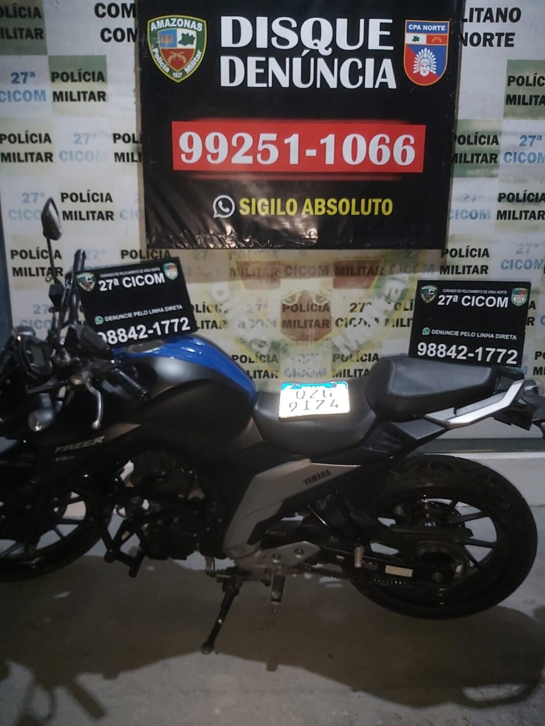 A Polícia Militar do Amazonas (PMAM), por meio da 27ª Companhia Interativa Comunitária (Cicom), recuperou uma motocicleta com restrição de roubo, na noite de sexta-feira (30/08), no bairro Novo Aleixo, zona norte de Manaus.