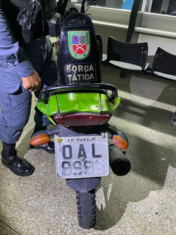 Policiais militares da Força Tática (FT) recuperaram, na madrugada do domingo (11/12), uma moto com restrição de roubo, em ação no bairro Jorge Teixeira, na zona leste de Manaus.