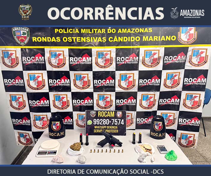 A Polícia Militar (PMAM), por meio das Rondas Ostensivas Cândido Mariano (Rocam), prendeu um homem de 24 anos, na noite de sexta-feira (06/03), por tráfico de drogas, no bairro Nossa Senhora de Fátima, zona norte de Manaus.