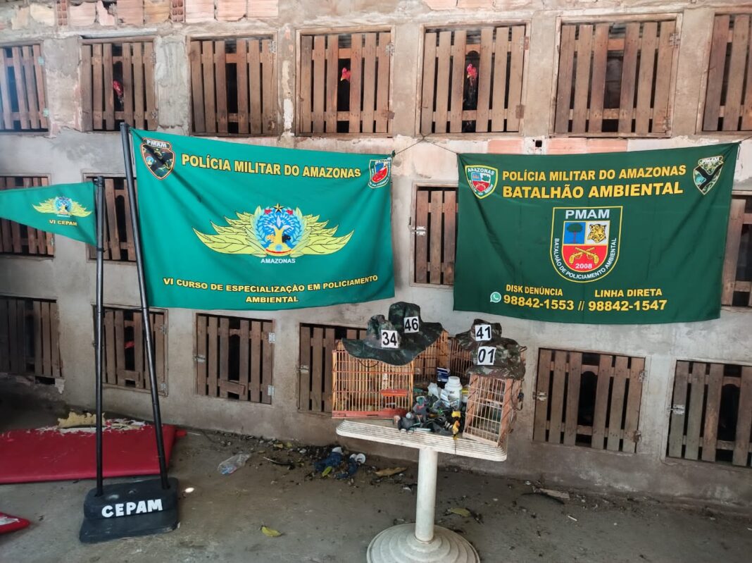 A Polícia Civil do Amazonas (PC-AM), juntamente com o Batalhão de Policiamento Ambiental (BPAmb), deteve no domingo (29/10), dois homens por posse de 92 galos utilizados para rinha, além de quatro pássaros silvestres da espécie Curió trancados em gaiolas. Ambos responderão por crime ambiental.