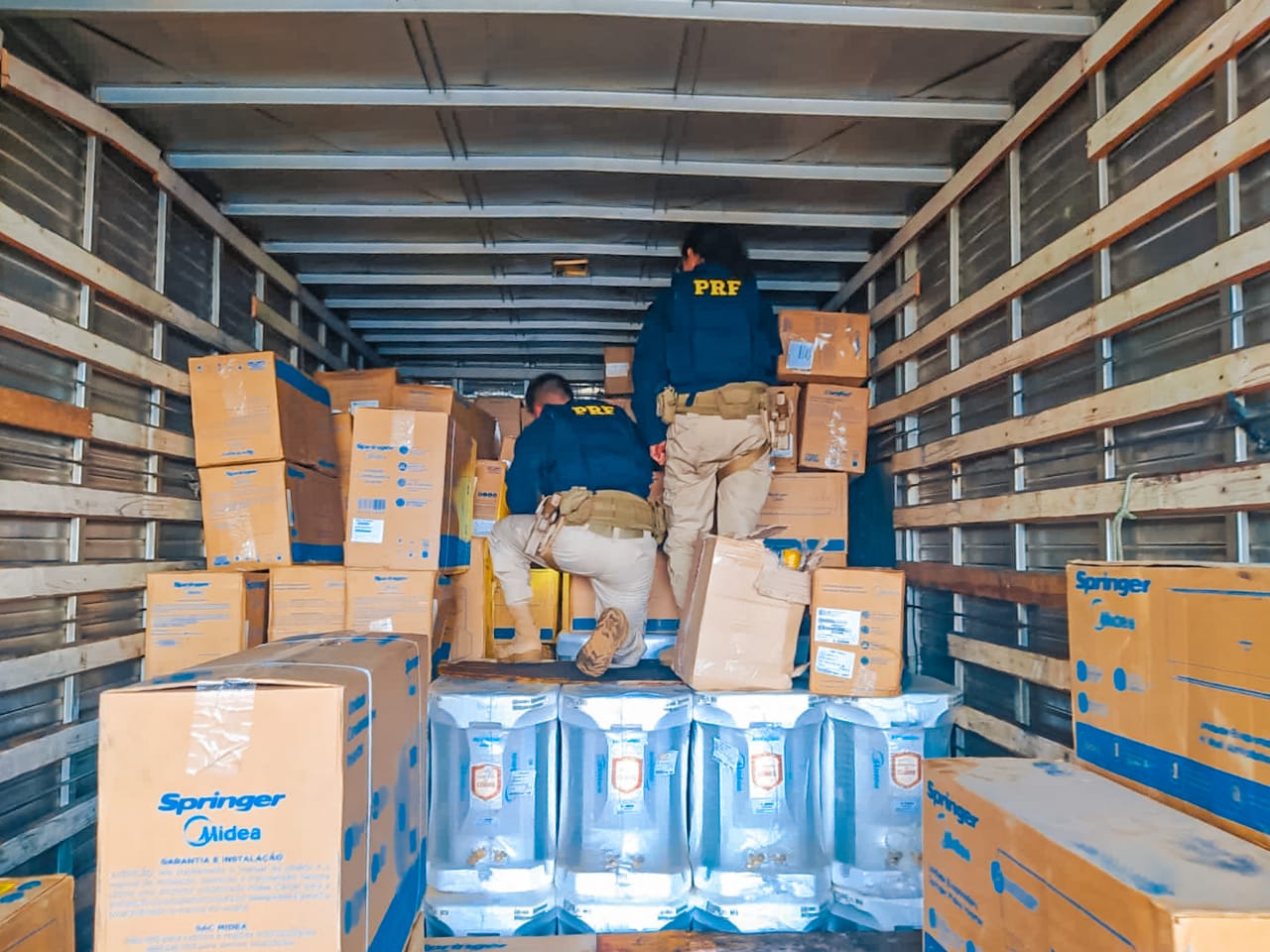 O flagrante aconteceu durante a fiscalização de rotina, os policiais abordaram o caminhão, realizando uma fiscalização veicular no compartimento do veículo assim encontrando caixas de papelão com a carga ilícita.