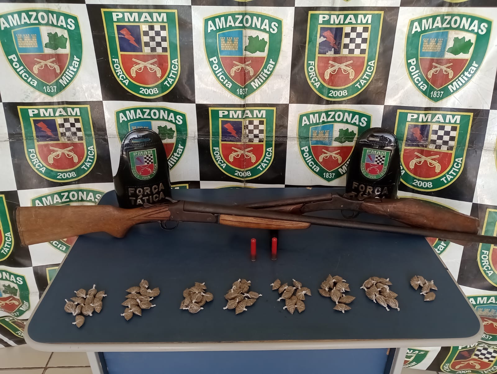 A Polícia Militar do Amazonas (PMAM), por meio da Força Tática prendeu dois homens, de 27 e 48 anos, e apreendeu armas, drogas e munições em ações distintas durante o cumprimento da Operação Fronteira Mais Segura/Protetor das Fronteiras. As ações coordenadas pela Secretaria de Segurança Pública do Amazonas (SSP-AM) foram deflagradas no município de Tonantins (a 865 quilômetros de Manaus).