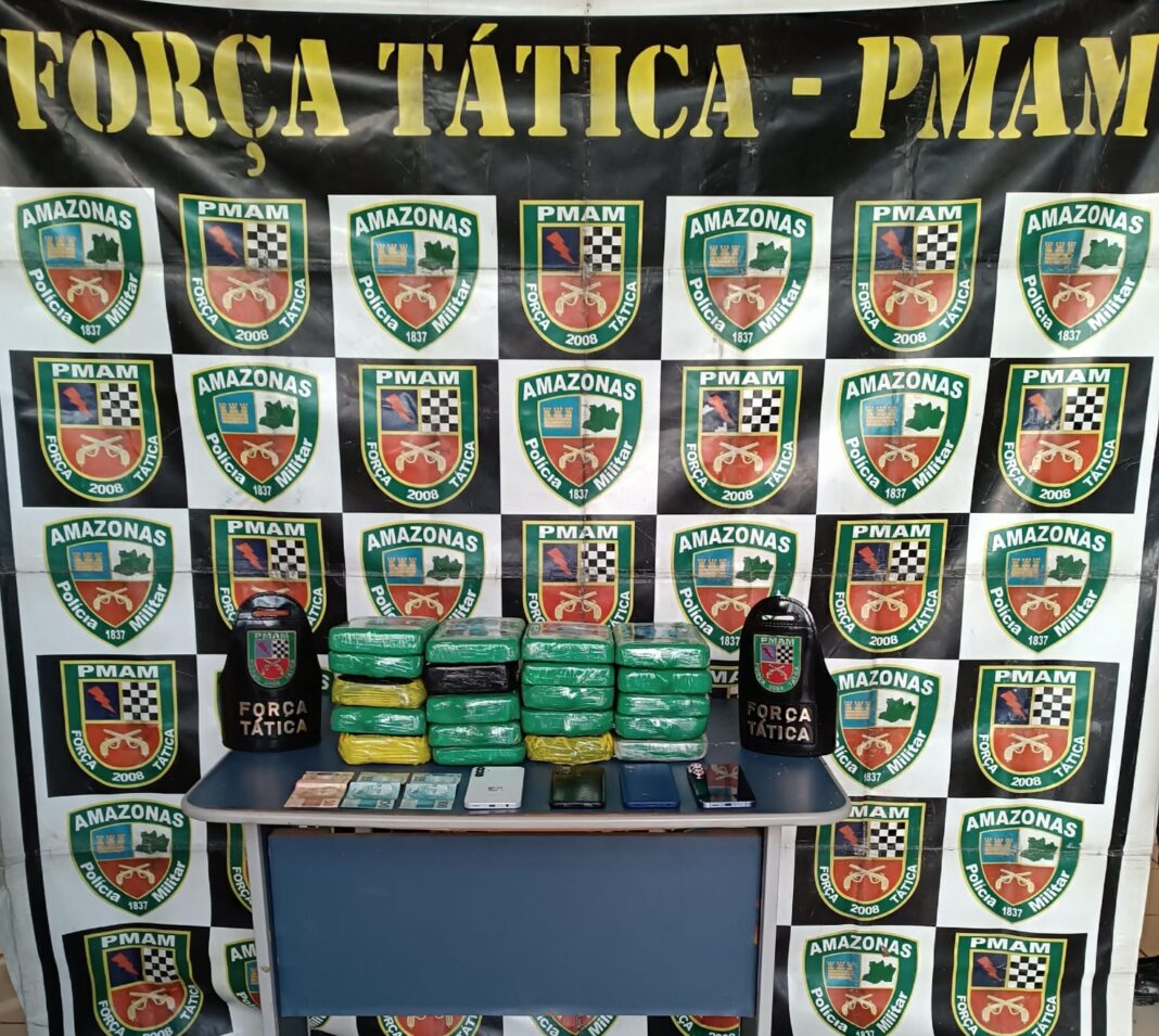 A Polícia Militar do Amazonas (PMAM), por meio da Força Tática em cumprimento da operação Protetor das Fronteiras, coordenada pela Secretaria de Estado de Segurança (SSP-AM) prendeu, nesta quinta-feira (15/08), quatro pessoas, entre elas uma mulher, com idades entre 18 e 36 anos, no porto de Tonantins (a 865 quilômetros de Manaus). O grupo é suspeito de tentar transportar 20 pacotes de drogas entre cocaína e pasta-base de cocaína dentro de um colchão.