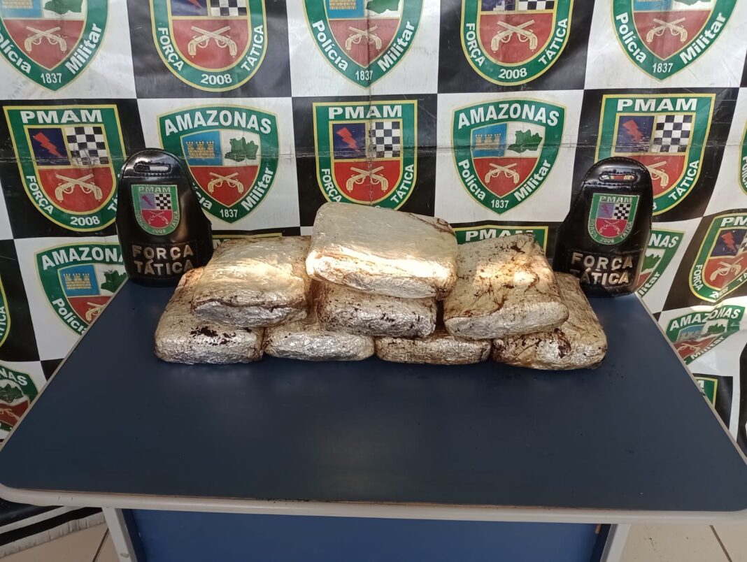A Polícia Militar do Amazonas (PMAM), por meio da Força Tática com o apoio da Secretaria de Segurança Pública (SSP-AM), apreendeu nove quilos de maconha, na quarta-feira (24/07), dentro de uma embarcação, no município de Tonantins (a 865 quilômetros de Manaus). A droga foi encontrada com um homem, de 40 anos. A apreensão foi realizada durante a Operação Fronteira Mais Segura/Protetor das Fronteiras, gerando danos estimando em R$ 180 mil ao crime organizado.