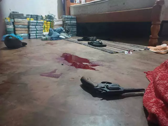 De acordo com boletim de ocorrência, os policiais que estavam de ronda na região ouviram barulho de tiro e abordaram a dona de uma residência. Ela disse não ter ouvido nada, mas apresentou nervosismo. Desconfiados de que a mulher estava sendo coagida, os militares entraram no quintal da residência e se depararam com uma escada apoiada no muro.