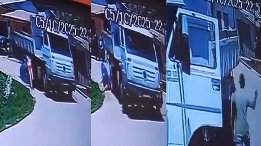 Câmeras de segurança flagraram o momento do acidente. A vítima caminhava com um guarda-chuva quando o caminhão, que passava pela via, a atingiu e a derrubou. Em seguida, o veículo passou por cima dela. O motorista do caminhão desceu do veículo em estado de choque, conforme mostram as imagens.