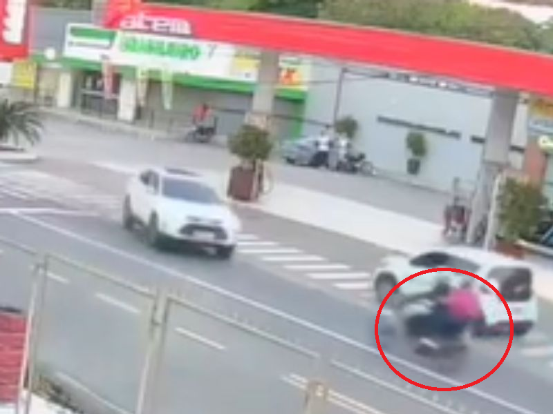 O acidente ocorreu por volta das 6h quando o motorista estava no posto de combustíveis. Ele sai na contramão e acaba acertando o motociclista. Um outro carro vinha ao lado também.