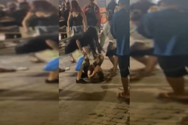 Em determinado momento, outros homens e mulheres se envolvem na pancadaria e começa uma sequência de rasteiras, sopapos e puxões de cabelo. A confusão só termina quando mais pessoas passam a separar a briga. Em nenhum momento houve a aproximação da polícia.