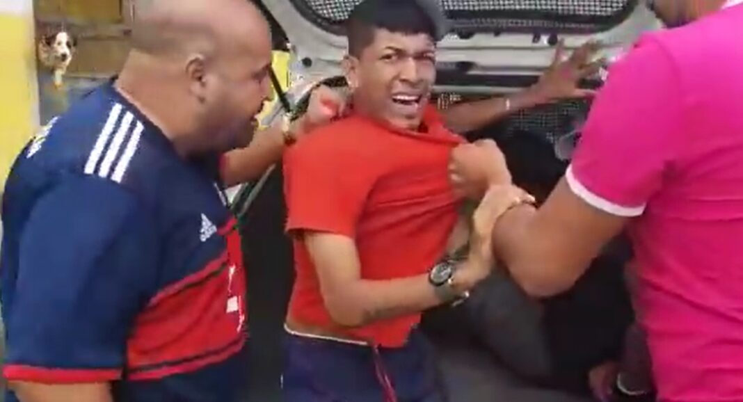 Um suspeito de tráfico preso pela polícia em Manaus caiu no choro e tentou de todo jeito não ser colocado na viatura.