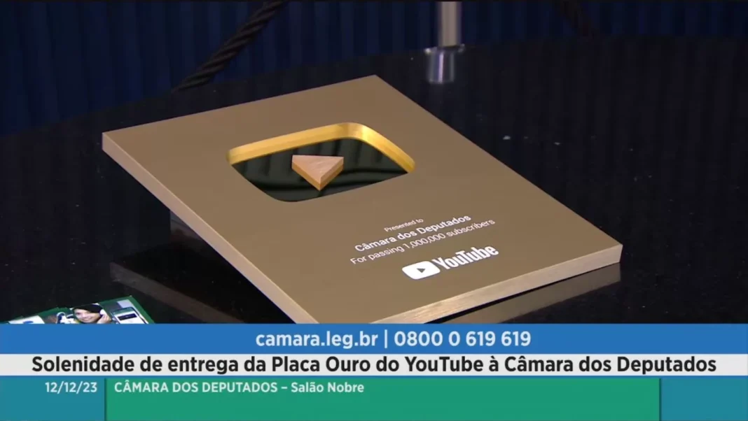 Brasília: Câmara recebe Placa de Ouro do YouTube por alcance de 1 milhão de inscritos em seu canal