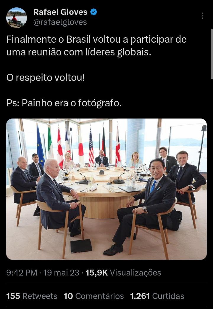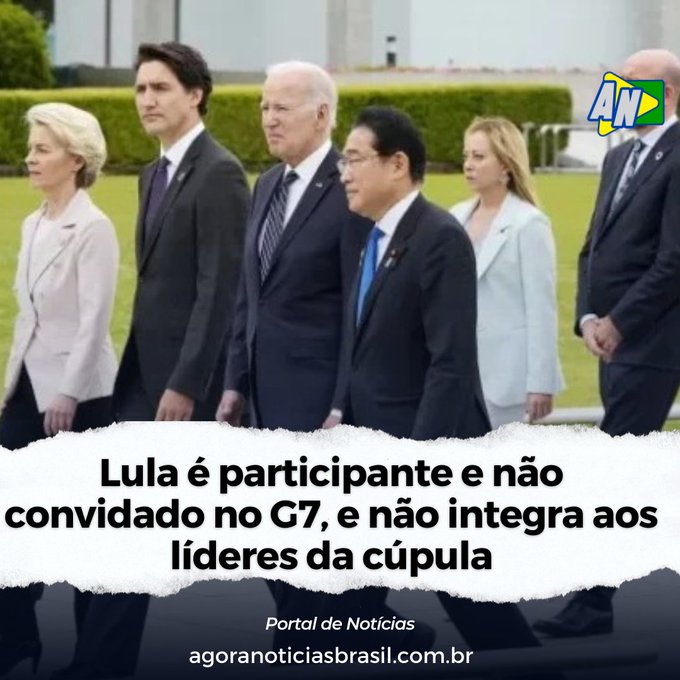 O presidente Lula virou chacota mundial no twitter, milhares de usuários procuraram ele nas fotos de reuniões do G7. No G1 ele chegou   a ser anunciado como partipante do G7, veja.
