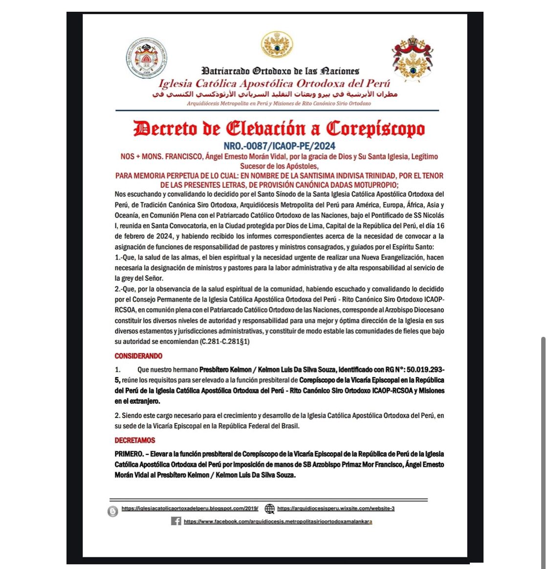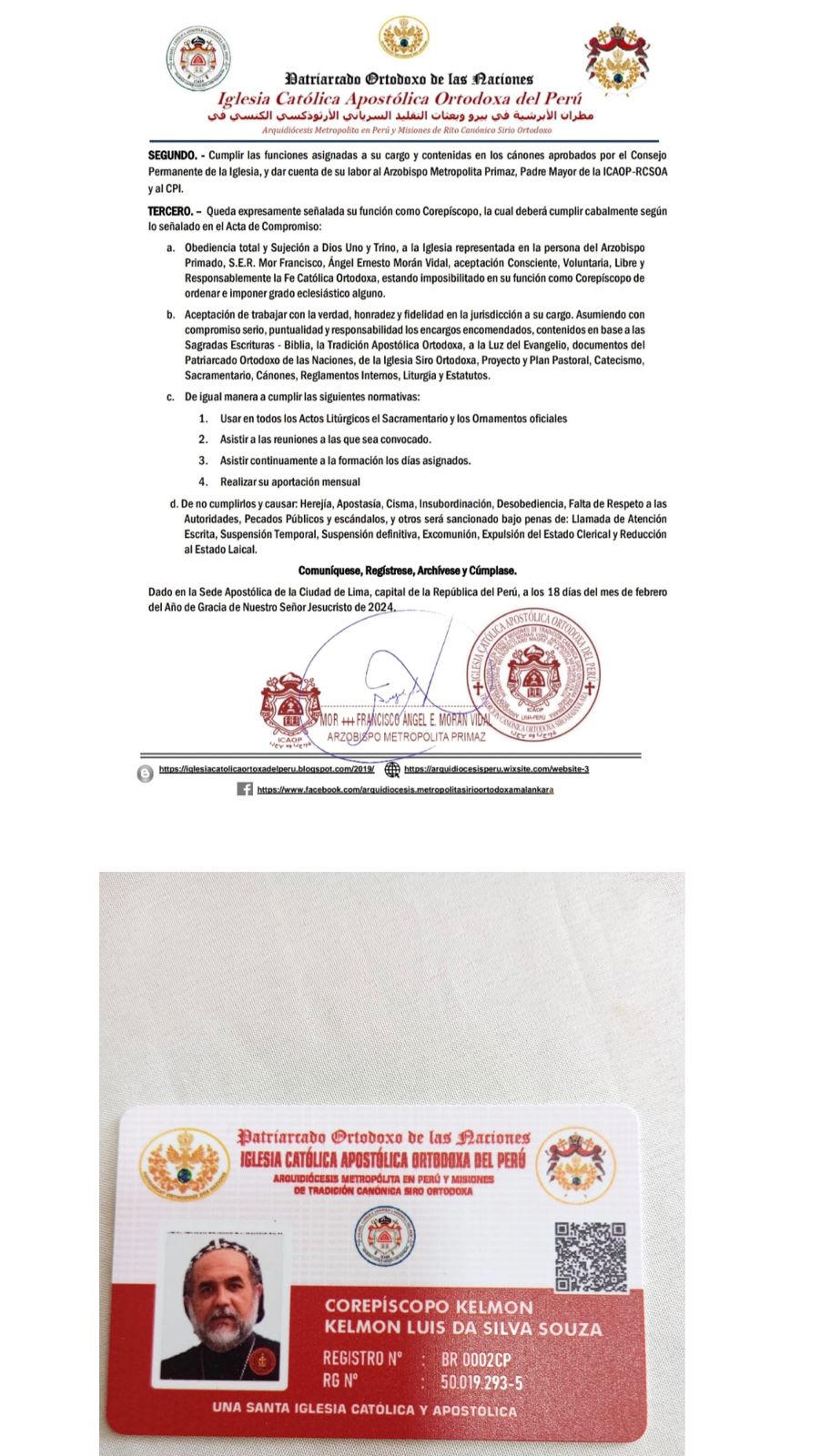 Documentos Oficiais que comprovam a legitimidade sacerdotal de Kelmon