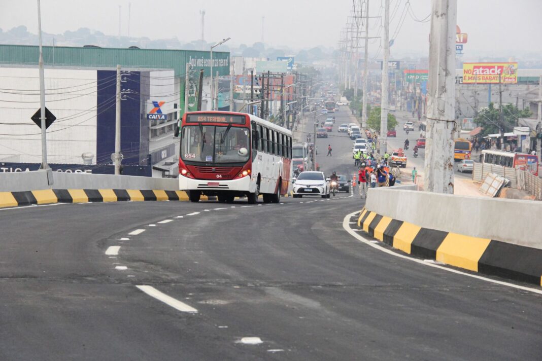 A Prefeitura de Manaus, por meio da Secretaria Municipal de Infraestrutura (Seminf), liberou, nesta terça-feira, 27/8, em tempo recorde, o tráfego de veículos na alça viária do viaduto Rei Pelé, localizado na área da bola do Produtor, na zona Leste da capital, interligando as avenidas Autaz Mirim e Camapuã. A região sofria com grandes retenções de veículos, especialmente durante os horários de pico.