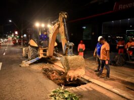 Força-tarefa noturna da Prefeitura de Manaus restabelece drenagem na avenida Djalma Batista