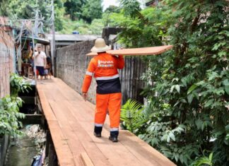 Prefeitura constrói cerca de 500 metros de ponte de madeira na...
