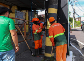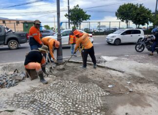 Prefeitura de Manaus realiza recuperação de calçada com pedras portuguesas