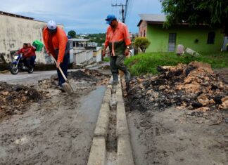 Prefeitura de Manaus trabalha na implantação de canaletas no bairro Novo...