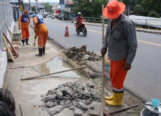 Prefeitura de Manaus realiza limpeza e reconstrução de tampa de caixa...