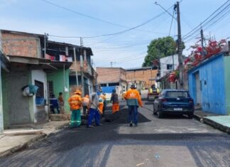 Prefeitura de Manaus avança com obras de recuperação asfáltica no bairro...