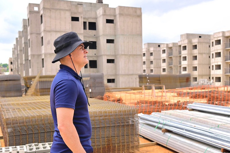 Durante vistoria às frentes de trabalho, o prefeito destacou a importância de reduzir o déficit habitacional e melhorar a qualidade de vida das famílias manauaras.