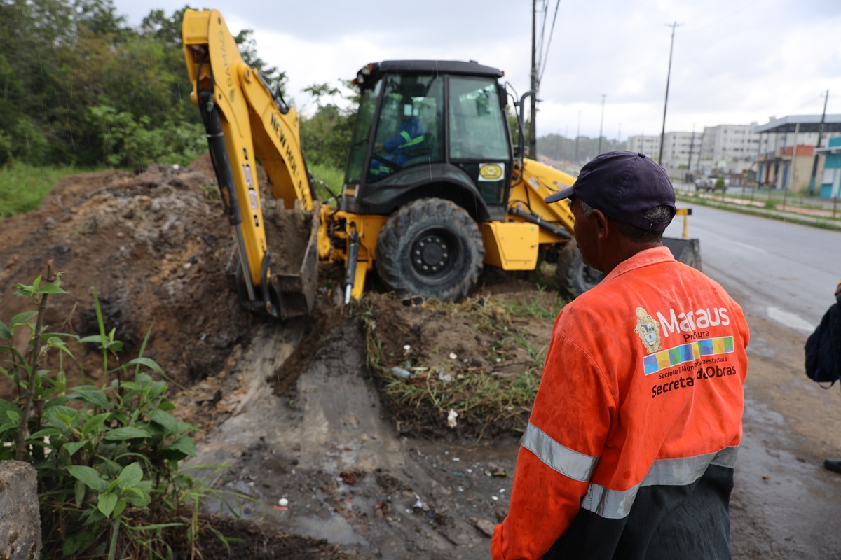 A Prefeitura de Manaus, por meio da Secretaria Municipal de Infraestrutura (Seminf), realizou nesta quarta-feira, 7/5, a desobstrução de uma caixa coletora na avenida Comendador José Cruz, no bairro Lago Azul, zona Norte da capital. A ação, que foi executada com o auxílio de uma retroescavadeira, tem como objetivo melhorar o escoamento das águas pluviais e prevenir alagamentos na via.