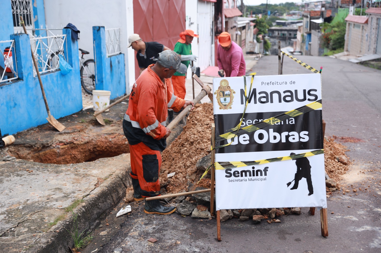 A Prefeitura de Manaus, por meio da Secretaria Municipal de Infraestrutura (Seminf), atendeu prontamente, nesta sexta-feira, 4/7, a solicitação dos moradores da rua Tiradentes, no bairro Compensa, zona Oeste da capital, e iniciou os trabalhos de recuperação da rede de drenagem profunda da via.