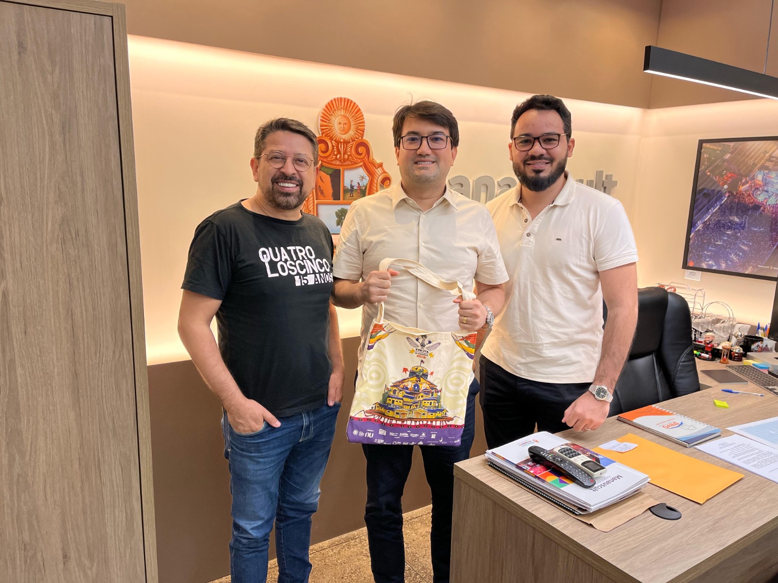 Participaram da reunião o presidente da Fetam, Cleber Ferreira, e o tesoureiro da instituição, Árlisson Cruz. Representando o poder público, o encontro contou com a presença do diretor-presidente da ManausCult, Jender Lobato, que destacou a importância da valorização da cultura e da arte cênica na capital.
