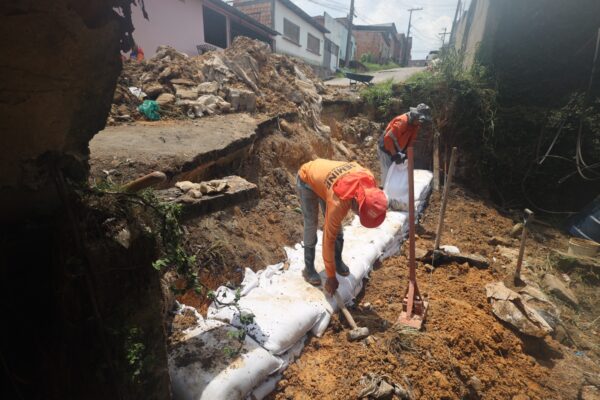 A intervenção está sendo executada de forma manual, para preservar a segurança das edificações, com o uso de uma técnica conhecida como rip-rap, que conta com o ensacamento de cimento e areia, que após empilhadas e umedecidas, as sacas formam uma barreira sólida, capaz de conter a movimentação do solo e evitar o avanço da erosão. A presença das equipes tem sido motivo de alívio entre os moradores.