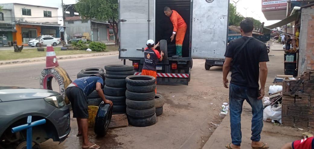 A Prefeitura de Manaus, por meio da Secretaria Municipal de Limpeza Urbana (Semulsp), recolheu mais de 2 mil pneus descartados de forma irregular nas ruas da capital amazonense entre os dias 4 e 21 de fevereiro. Somente na última sexta-feira, 21/2, foram coletadas 1.561 unidades, principalmente nos bairros da zona Centro-Oeste, como Dom Pedro, Santo Antônio, Alvorada, Compensa e São Jorge. A ação também abrangeu os bairros Zumbi, na zona Leste, e Cachoeirinha, na zona Sul.