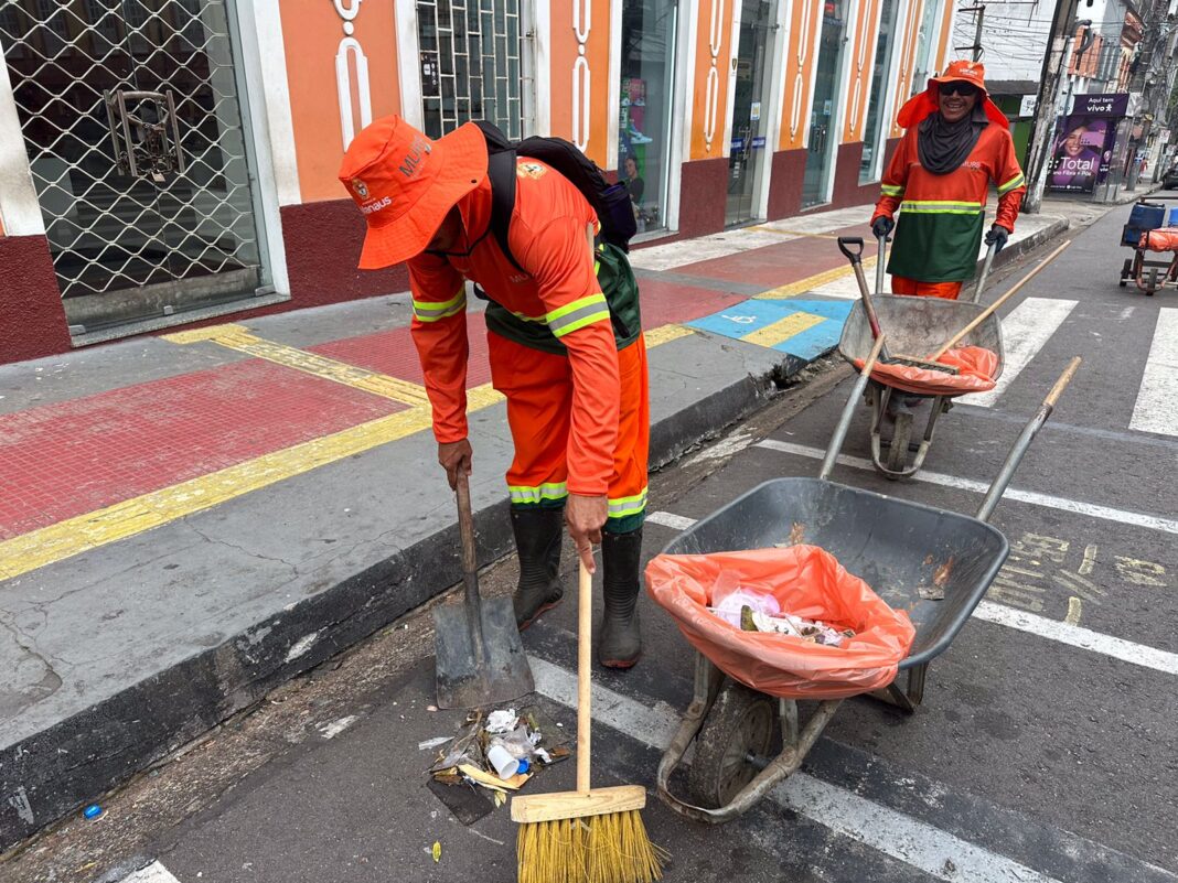 A Prefeitura de Manaus, por meio da Secretaria Municipal de Limpeza Urbana (Semulsp), realizou, neste domingo, 17/11, uma força-tarefa de limpeza e manutenção na área central da capital amazonense. A ação mobilizou 150 servidores, além de uma frota composta por caçambas, caminhões coletores, carros-pipa e equipamentos mecanizados.