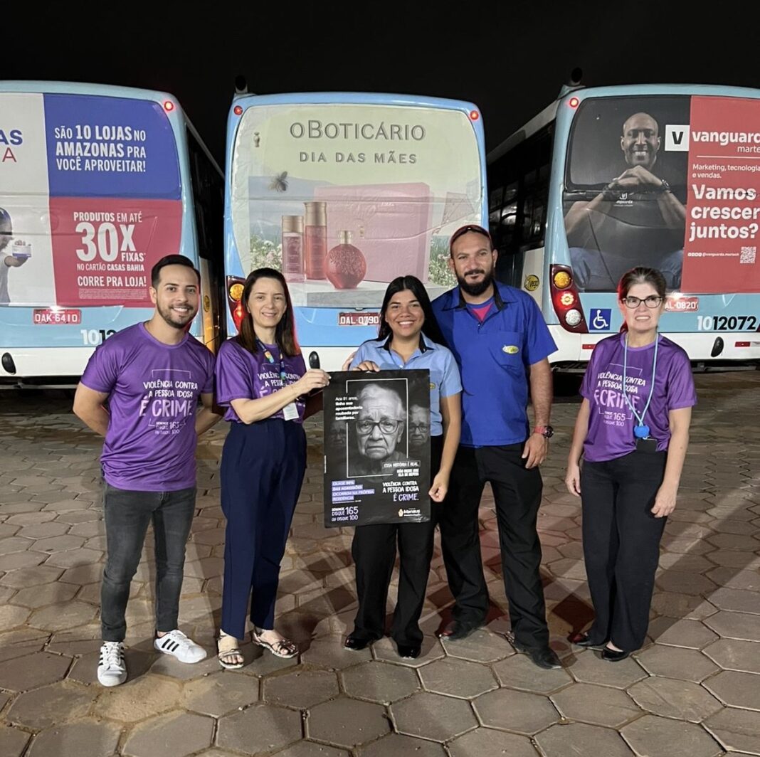 Durante as visitas, também foram fixados cartazes informativos da campanha no interior dos ônibus, com mensagens de enfrentamento à violência e incentivo à denúncia. Além disso, foram distribuídos materiais educativos com orientações sobre os tipos mais comuns de violência contra a pessoa idosa, como negligência, abusos físicos, psicológicos, financeiros e institucionais.