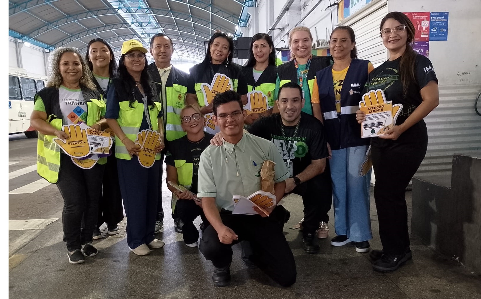 Como parte das ações para garantir segurança no transporte público, a Prefeitura de Manaus, por meio do Instituto Municipal de Mobilidade Urbana (IMMU), promoveu, nesta quinta-feira, 27/3, a distribuição de material e orientação aos usuários sobre os cuidados dentro dos ônibus para evitar acidentes no Terminal de Integração da Cachoeirinha, o T2.