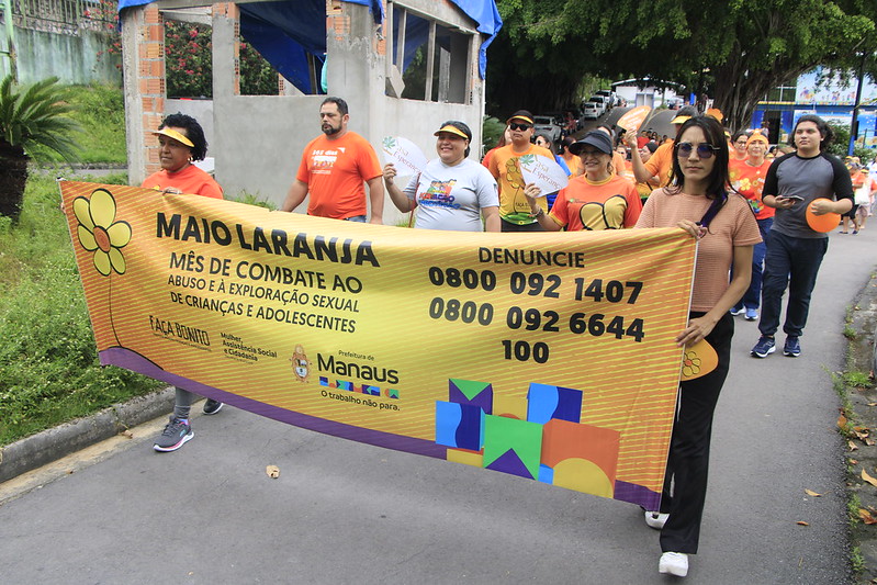 Dando continuidade à programação do “Maio Laranja”, a Prefeitura de Manaus, por meio da Secretaria Municipal da Mulher, Assistência Social e Cidadania (Semasc), realizou, nesta sexta-feira, 16/5, uma caminhada de sensibilização sobre o enfrentamento ao abuso e à exploração sexual de crianças e adolescentes. A ação foi organizada de forma conjunta pelo Centro de Referência de Assistência Social (Cras) Japiim e pelo Centro de Referência Especializado de Assistência Social (Creas) Sul.