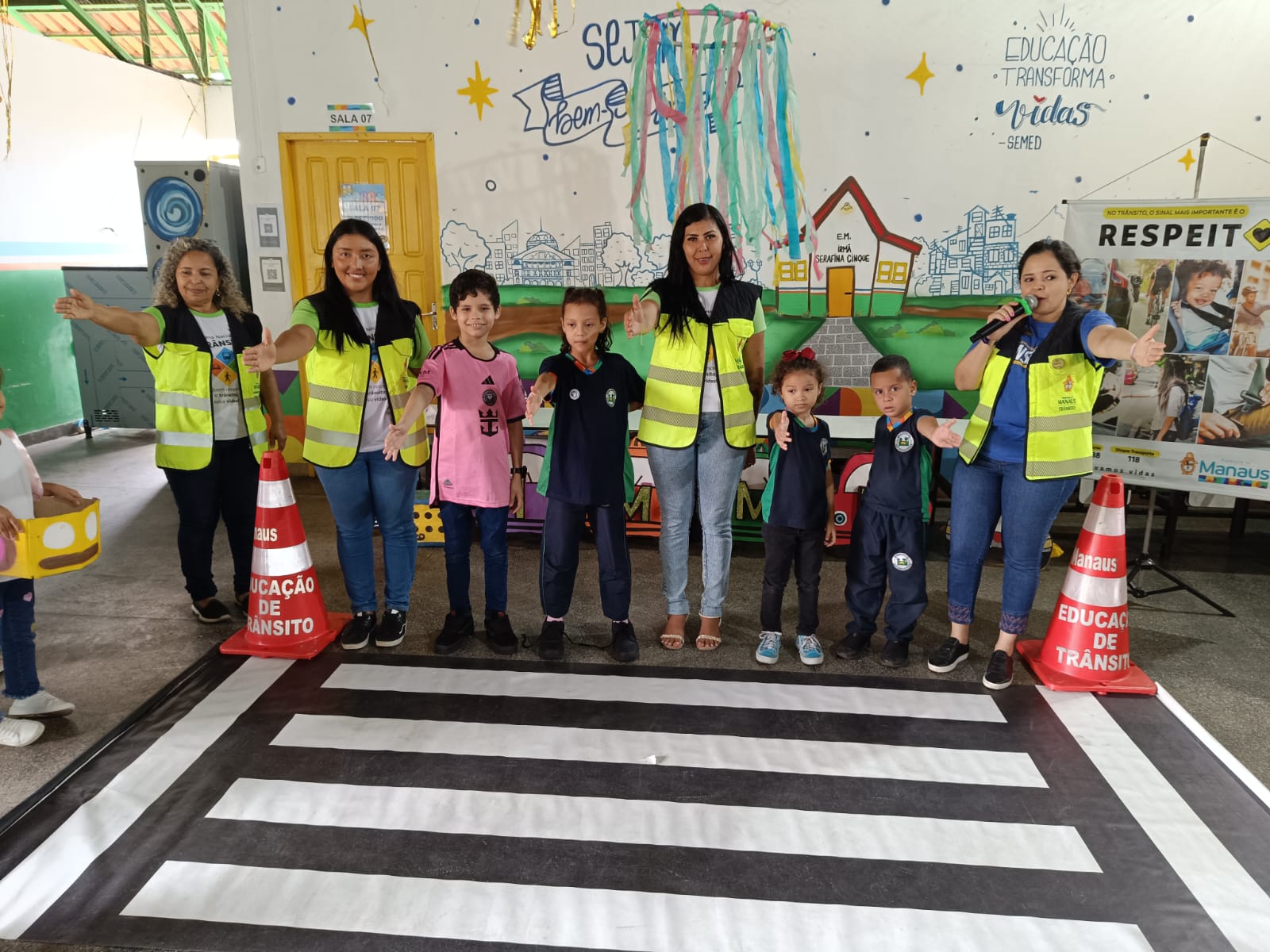 A Prefeitura de Manaus, por meio do Instituto Municipal de Mobilidade Urbana (IMMU), realizou, nesta quinta-feira, 27/2, uma ação educativa na escola municipal Irmã Serafina, no bairro Tarumã, zona Oeste da cidade. A ação faz parte do projeto “Trânsito na Escola”, que busca ensinar às crianças sobre segurança viária e incentivar a divulgação dessas informações entre familiares e a comunidade.