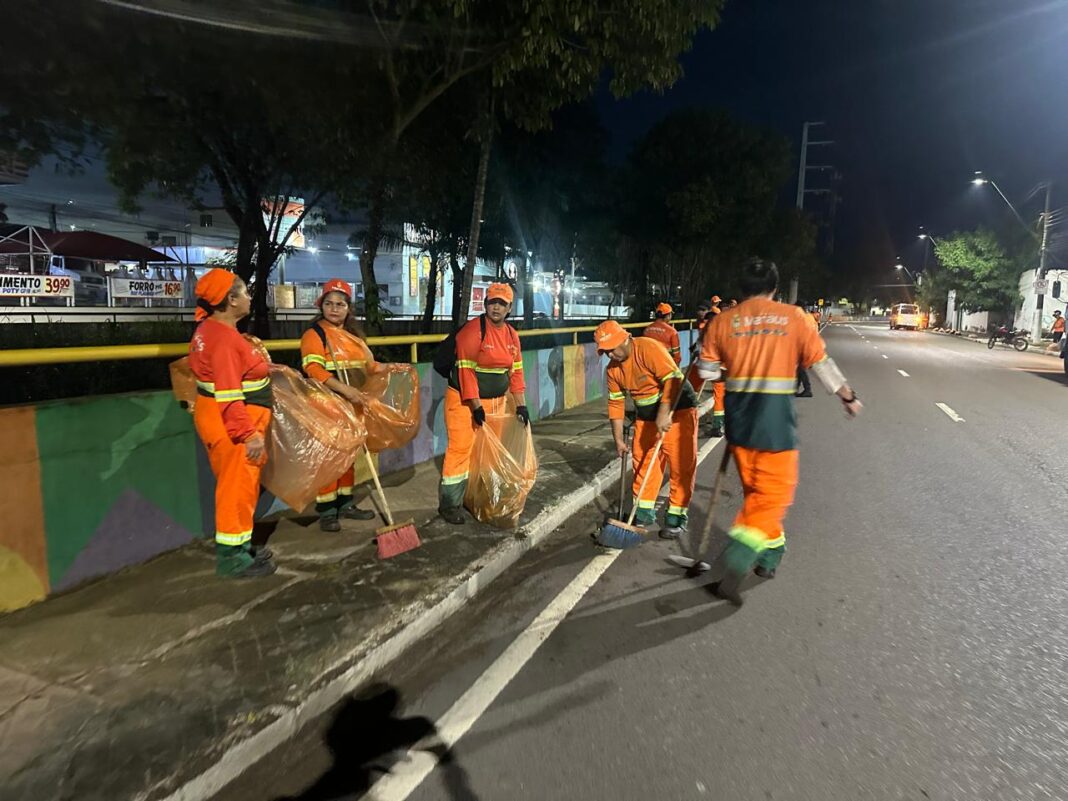 Na madrugada desta sexta-feira, 25/4, a avenida Brasil foi palco de uma grande operação de limpeza promovida pela Prefeitura de Manaus, por meio da Secretaria Municipal de Limpeza Urbana (Semulsp). Mais de cem garis participaram da força-tarefa, executando serviços de capinação, varrição, raspagem e recolhimento de resíduos, como parte da preparação para o aniversário de 61 anos do bairro localizado na zona Oeste.