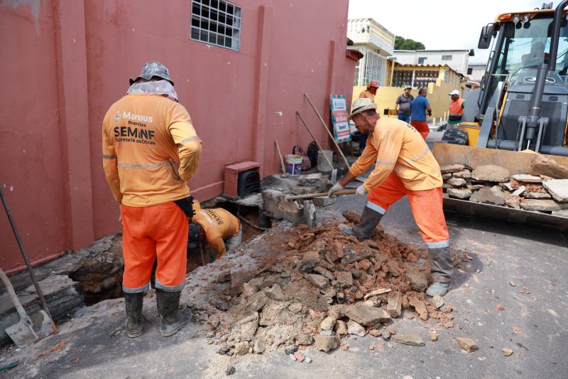 A Prefeitura de Manaus, por meio da Secretaria Municipal de Infraestrutura (Seminf), executou, nesta terça-feira, 22/4, na rua Aluísio Azevedo, bairro Japiim 2, zona Sul, o serviço de recuperação de rede de drenagem profunda.