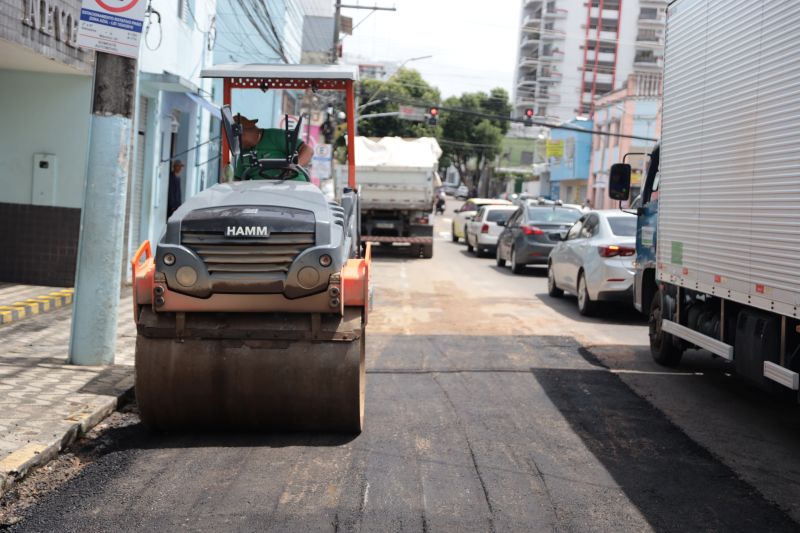 Com aproximadamente 20 toneladas de asfalto, as equipes realizam a manutenção de uma das avenidas mais movimentadas do Centro Histórico de Manaus.