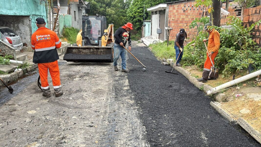 A Prefeitura de Manaus, por meio da Secretaria Municipal de Infraestrutura (Seminf), está presente nesta quarta-feira, 5/11, na comunidade Santa Inês, no bairro Jorge Teixeira, com mais uma frente de trabalho do “Plano de Verão”, que contempla a rua Cobra Cipó. O trabalho reforça o compromisso da gestão municipal em recuperar as ruas da zona Leste.