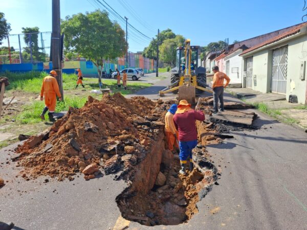 A Prefeitura de Manaus, por meio da Secretaria Municipal de Infraestrutura (Seminf), inicia o ano de 2026 com a execução do seu cronograma de obras para melhorar a qualidade de vida da população. Durante esta sexta-feira, 2/1, as equipes executam a manutenção em trecho de rede de drenagem profunda da rua Waldemar Pereira de Souza, conjunto Belvedere, no bairro Planalto, zona Centro-Oeste da capital.