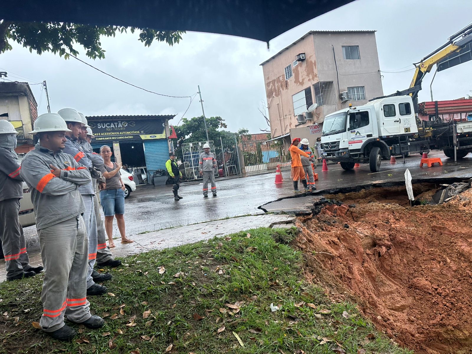 Após a avaliação realizada pelas equipes do distrito de obras, foi identificado o rompimento da rede de drenagem em decorrência do seu desgaste pela sobrecarga após o volume intenso de águas pluviais dos últimos dias.