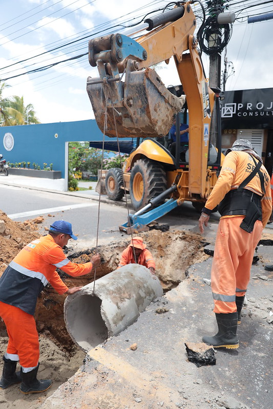 Uma cratera de aproximadamente dois metros de profundidade se formou no local devido ao rompimento da antiga rede de drenagem. De forma imediata, as equipes começaram a atuar na área, implantando dois novos tubos que irão proporcionar maior durabilidade e eficiência ao sistema.